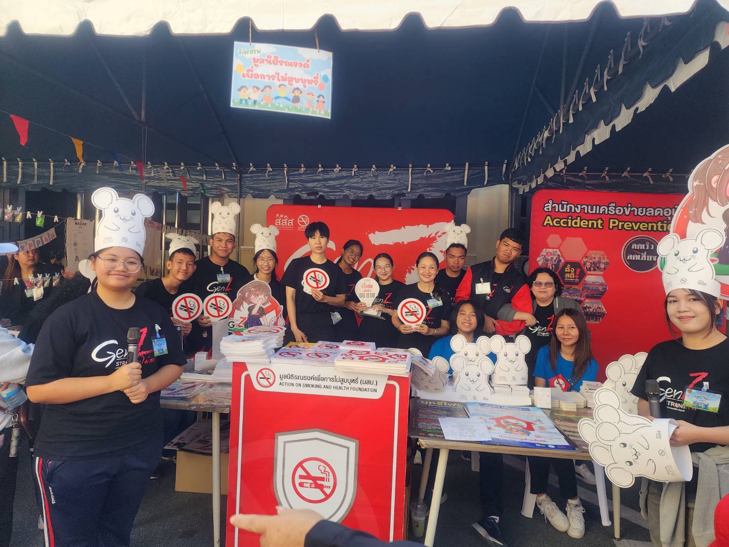 มูลนิธิรณรงค์เพื่อการไม่สูบบุหรี่ นำโดย นางสาวพรพัฒนา สิงคเสลิต กรรมการมูลนิธิรณรงค์เพื่อการไม่สูบบุหรี่ และนางสาวชวาลา ภวภูตานนท์ ณ มหาสารคาม ผู้ช่วยผู้จัดการมูลนิธิรณรงค์เพื่อการไม่สูบบุหรี่ พร้อมกับนักเรียนแกนนำ GenZ โรงเรียนนวมินทราชินูทิศ สตรีวิทยา ๒ ให้การต้อนรับท่านนายกรัฐมนตรี นายอนุทิน ชาญวีรกูล ในกิจกรรมออกบูธนำเสนอกิจกรรมรณรงค์ไม่สูบบุหรี่และบุหรี่ไฟฟ้า โดยเฉพาะหมวกหนูขี้เบื่อ ที่ได้รับการตอบรับจากเด็กๆ เป็นอย่างดี