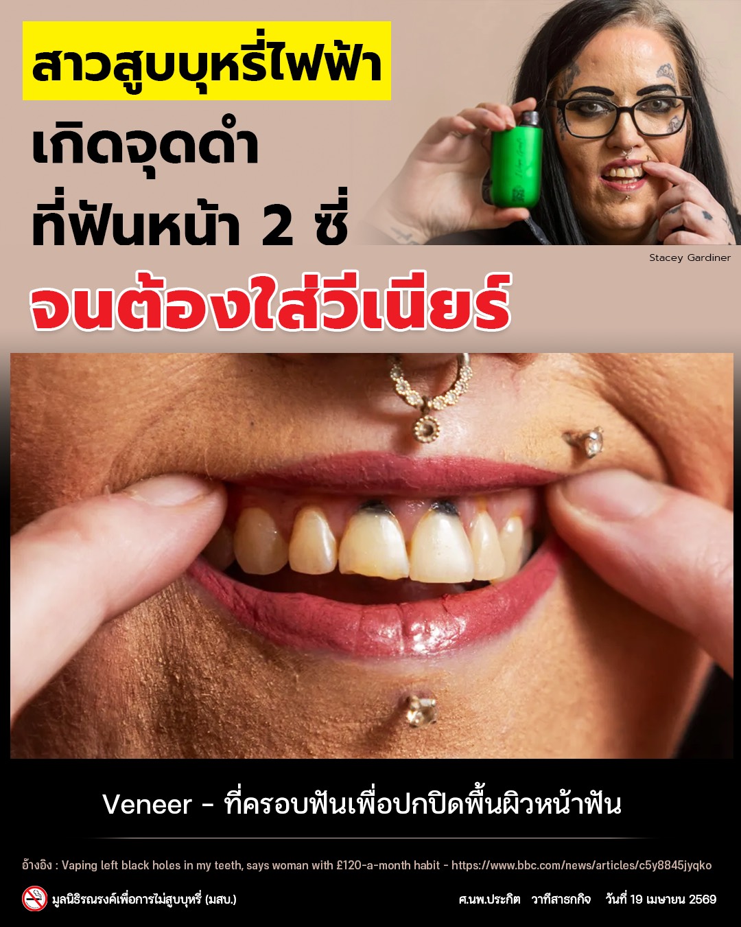 สาวเลิกสูบบุหรี่ไฟฟ้าหลังเกิด“จุดดำ”ที่ฟันหน้า